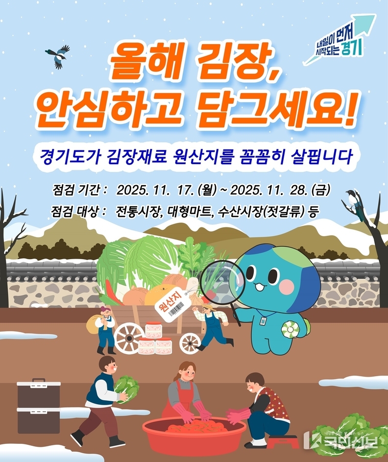 배소영 경기도 농식품유통과장은 “김장철을 맞아 도민들이 안심하고 국산 농수산물을 구매할 수 있도록 철저한 원산지 관리에 최선을 다하겠다”며 “유통업체와 판매자분들께서는 원산지표시 의무를 성실히 이행하고, 소비자는 구입시 원산지를 꼭 확인 주시기 바란다”고 당부했다.