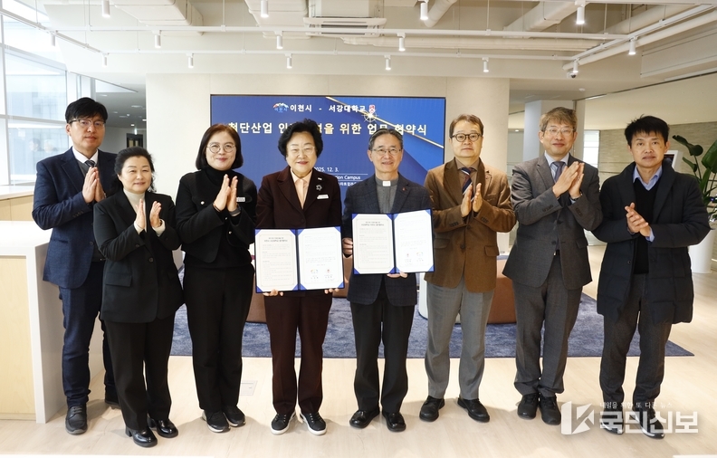 이천시는 12월 3일 오전 10시, 서강대학교 판교디지털 혁신캠퍼스에서 반도체 등 첨단산업 분야에서 전문 인재를 체계적으로 육성하기 위한 이천시–서강대학교 업무협약을 체결했다.