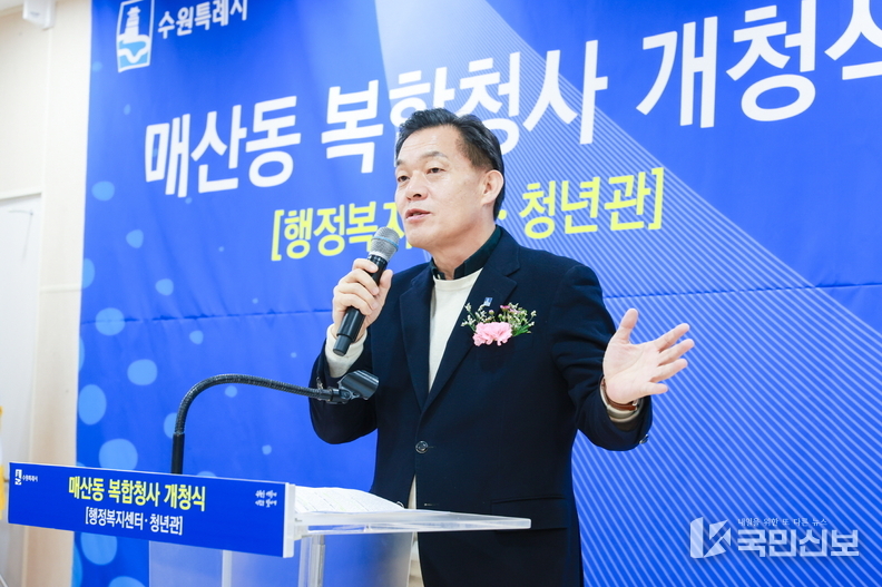 수원 매산동 도시재생뉴딜사업의 핵심인 매산동 행정복지센터 복합개발사업이 마무리됐다. 수원시는 3일 팔달구 매산로2가 40-30 현지에서 매산동 복합청사 개청식을 열었다.