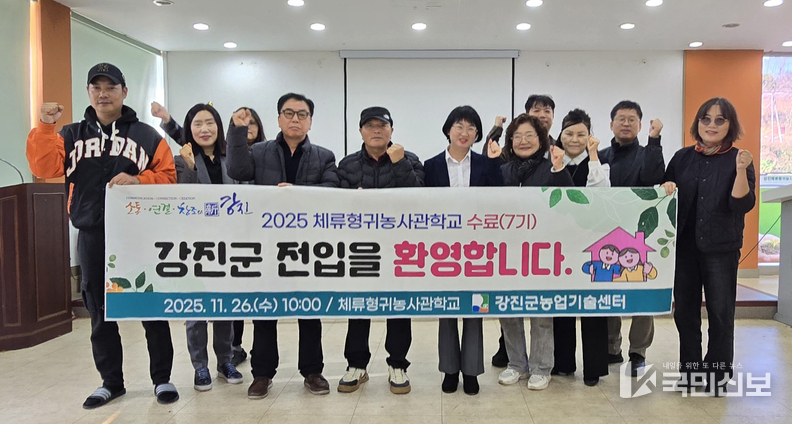 강진원 강진군수는 “9개월간의 교육을 마치고 강진에서 새로운 삶을 시작한 수료생 여러분을 진심으로 축하드린다”며 “정착 과정에서 배운 영농기술이 현장에서 잘 뿌리내릴 수 있도록 지속적으로 지원하고, 지역 공동체와 자연스럽게 어울리며 안정적으로 생활할 수 있도록 군에서도 끝까지 함께하겠다”고 밝혔다.
