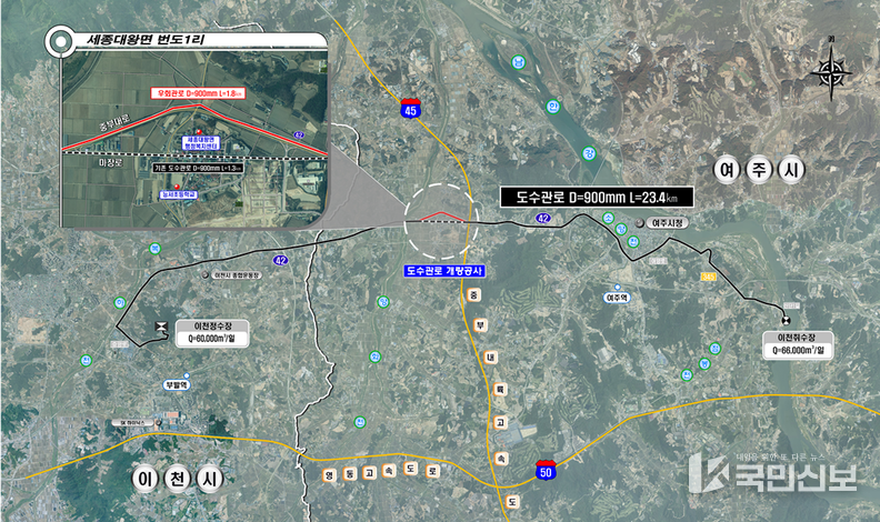 이 사업은 누수가 반복적으로 발생해 온 여주시 세종대왕면 (구)국도 구간의 기존 도수관로를 (현)국도42호선 인근으로 우회해 신규 관로를 설치하는 방식으로 추진됐다.