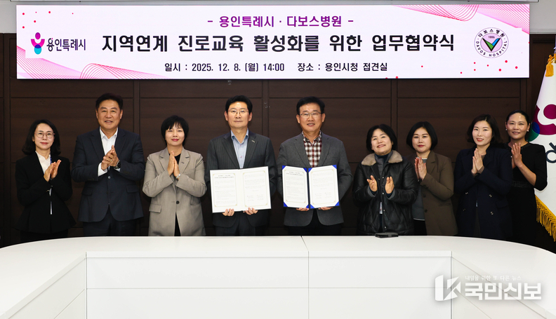 이날 이상일 시장과 양성범 다보스병원 이사장은 시청 시장접견실에서 ‘지역연계 진로교육 활성화를 위한 업무협약’을 맺었다.