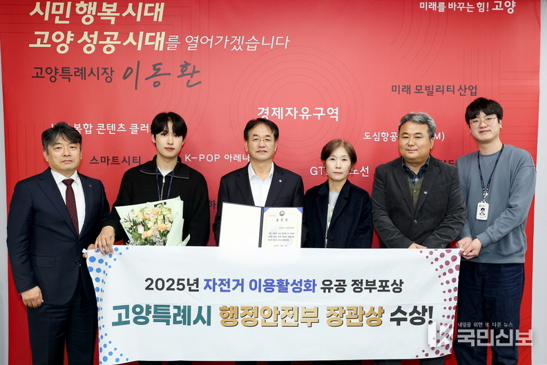 고양특례시는 행정안전부가 주관한 ‘2025년 자전거 이용 활성화 유공 포상'에서 행정안전부 장관 표창을 수상했다고 밝혔다.
