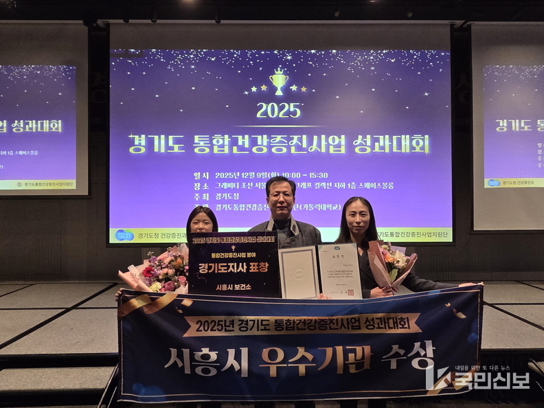 시흥시보건소가 경기도가 주관한 ‘2025년 통합건강증진 사업 성과대회’에서 우수기관으로 선정돼 경기도지사 표창을 받았다.