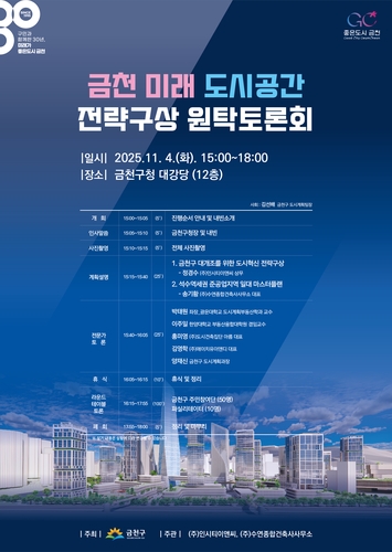 금천구(구청장 유성훈)는 4일 오후 3시 금천구청사 12층 대강당에서 '금천의 미래 도시공간 전략구상 계획 수립을 위한 원탁토론회'를 연다고 밝혔다.