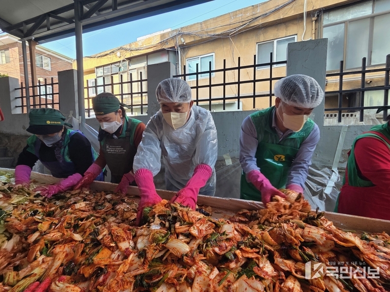 지난 5일 군포시 군포1동새마을지도자협의회와 군포1동새마을부녀회는 군포1동행정복지센터 앞마당에서 ‘2025년 사랑담은 김장김치 담그기’행사를 열고, 지역 내 어려운 이웃을 위한 따뜻한 나눔을 실천했다.