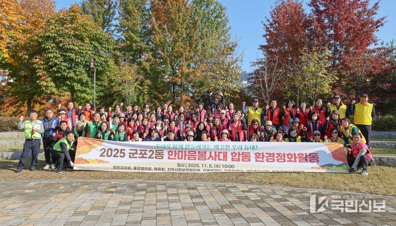 군포2동은 지난 5일 군포2동 한마음봉사대가 가을을 맞이하여 지역 주민들이 더욱 쾌적하고 안전한 환경에서 생활할 수 있도록 환경정화활동을 실시했다고 밝혔다.