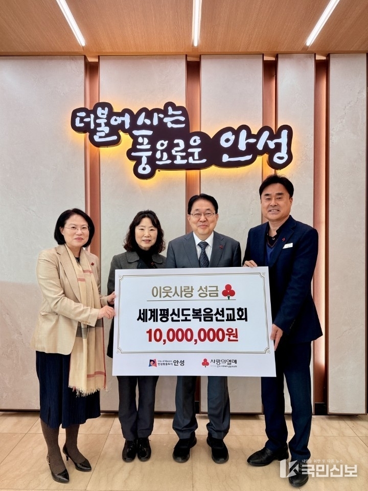 안성시는 지난 10일 세계평신도복음선교회로부터 현금 1천만원을 지정기부금으로 전달받았다고 밝혔다.