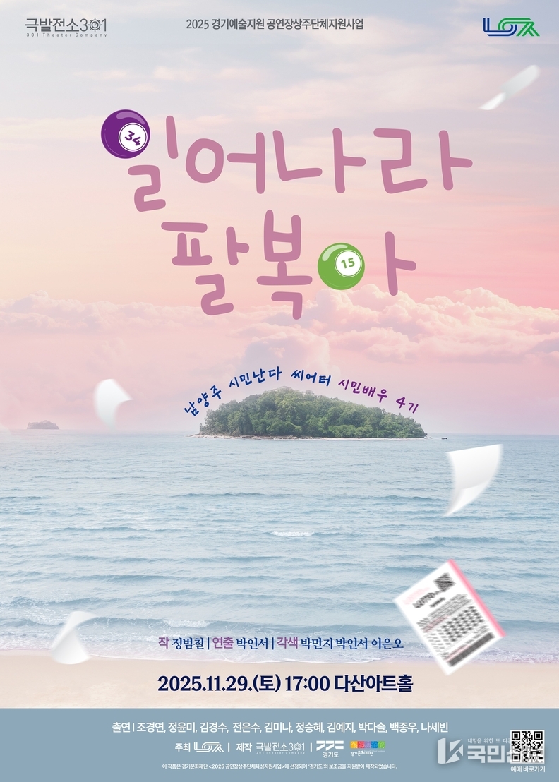 이어 29일에는 4기 시민배우들이 출연하는 연극 ‘일어나라 팔복아’가 무대에 오른다. 작은 섬마을에서 로또 당첨금을 지키기 위한 소동극을 유쾌하게 풀어내며, 관객들에게 웃음과 공감을 선사할 예정이다.