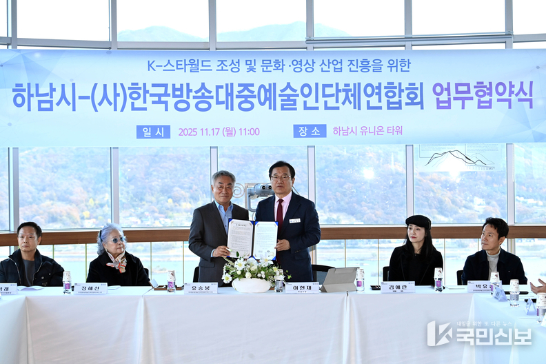하남시는 지난 17일 하남시 유니온타워에서 한국방송대중예술인단체연합회와 ‘K-컬처 복합 콤플렉스(K-스타월드)’의 성공적 추진과 대한민국 문화영상산업의 경쟁력 강화를 위한 업무협약을 체결했다고 밝혔다.