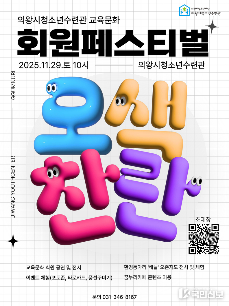 의왕시청소년재단 내 의왕시청소년수련관은 교육문화 프로그램에 참여하고 있는 회원들이 한자리에 모여 성과를 나누는 축제인‘회원페스티벌 – 오색찬란’을 11월 29일 개최한다.