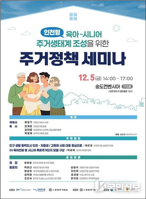 인천연구원은 인천도시공사, 한국주거학회와 함께 12월 5일 송도컨벤시아에서 육아 및 시니어 돌봄 사각지대 해소를 위해 <인천형 육아-시니어 주거생태계 조성을 위한 주거정책 세미나>를 개최한다.