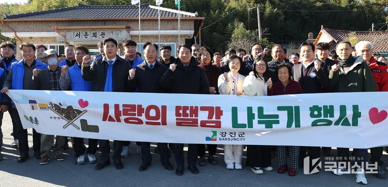 강진군이 겨울철 난방에 어려움을 겪는 취약계층을 돕기 위해 지난 8일 군동면 서은마을 회관에서 ‘사랑의 땔감 나누기’ 행사를 열었다.