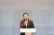 제1회 수원특례시장배 전국 생활체육 체조대회가 16일 수원 빛누리아트홀에서 열렸다. 수원시체조협회가 주최하고, 수원특례시가 후원한 이날 대회에는 전국 생활체육 체조 동호인(일반부·어르신부·어린이부·청소년부) 300여 명이 참가했다. 대회는 체조 동호인 클럽 대항전 형식으로 진행됐다. 이재준 수원특례시장은 “체조로 얻는 활력과 즐거움은 그 어떤 스포츠보다 크다”며 “오늘 대회가 시민 일상에 체조가 자리 잡는 출발점이 되길 바란다”고 말했다. [ 국민신보 = 박래철 기자 ]