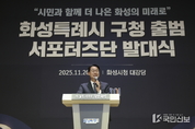 화성특례시는 20일 시청 대강당에서 ‘구청 출범 서포터즈단’ 발대식을 개최하고 시민 참여를 기반으로 한 구청 체제 출범 준비에 박차를 가했다. 서포터즈단은 2026년 2월 만세구·효행구·병점구·동탄구 4개 구청 체제 출범을 앞두고, 새로운 행정체제에 대한 시민들의 생생한 제안사항을 시에 전달함으로써 시민들의 공감대를 높이고 성공적인 구청 출범을 위한 동력을 확보하는 역할을 하게 된다. 서포터즈단은 화성시민 누구나 참여 가능한 공개 모집을 통해 구성됐으며, 시는 구청 출범에 대한 높은 시민 열망을 반영해 당초 200명에서 300명으로 인원을 늘려 구성했다. 서포터즈는 향후 구별 회의를 통해 주민편의 증진을 위한 의견을 제시하고, 구청 출범 전후의 불편사항과 개선 필요점 등을 제안하는 역할을 수행한다. 또한, 시민과 가까이에서 일반구 출범 홍보활동을 통해 더 많은 시민에게 구청 출범에 따른 지역의 행정 변화를 알리는 시민 홍보대사 역할을 하게 된다. 이날 발대식에는 서포터즈단을 비롯해 정명근 화성특례시장과 구청체제 출범대비 TF, 시민 등이 참석한 가운데, 위촉장 수여, 서포터즈단 역할 및 활동 안내, 기념촬영이 진행됐다. 2부에서는 화성특례시 도시정책관의 ‘화
