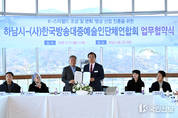 하남시는 지난 17일 하남시 유니온타워에서 한국방송대중예술인단체연합회와 ‘K-컬처 복합 콤플렉스(K-스타월드)’의 성공적 추진과 대한민국 문화영상산업의 경쟁력 강화를 위한 업무협약을 체결했다고 밝혔다. 이번 협약식에는 유승봉 한국방송대중예술인단체연합회 이사장과 정혜선연합회 고문 등 방송·대중예술 분야 5개 단체(한국방송대중예술인단체연합회, 대한민국방송코미디언협회, 한국성우협회, 한국방송실연자권리협회, 한국연극배우협회)를 대표하는 임원들이 참석해, K-컬처 복합 콤플렉스(K-스타월드)가 대한민국을 대표하는 문화산업으로 지속 추진될 수 있도록 응원과 지지하는 내용을 담아 업무협약을 맺었다. 최근 K-Pop·드라마-무비 등 대한민국이 제작하는 문화영상 콘텐츠가 전 세계적 인기를 얻으며 국가 이미지와 경제에 큰 기여를 하고 있다. 하남시는 이러한 흐름에 맞춰 수도권의 새로운 문화산업 중심지로 도약하기 위한 전략사업으로 2-3만명 K-pop 전용 공연장, 세계적 영상 스튜디오, 아카데미 등이 함께 들어설 K-컬처 복합 콤플렉스(K-스타월드)를 추진 중이다. 그동안 하남시는 규제해소를 위한 지속적인 노력으로 국토부 지침 개정(`23.7.)을 통해 수질오염대책 수립 시