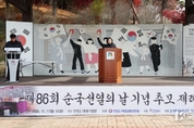 광주시는 제86회 순국선열의 날을 맞아 지난 17일 호국보훈공원 내 현충탑에서 ‘순국선열 및 호국영령 합동 추모식’을 개최했다. 이날 추모식은 광복회, 전몰군경유족회, 전몰군경미망인회가 합동으로 주관했으며 헌화·분향, 추념사, 추모 헌시, 시상 등의 순으로 진행됐다. 행사에는 방세환 시장을 비롯해 보훈 단체장, 경기동부보훈지청장, 보훈 가족 등 150여 명이 참석해 나라와 민족을 위해 헌신한 순국선열과 호국영령의 숭고한 희생을 기렸다. 추념사에서 이강세 광복회 광주시지회장은 “순국선열과 호국영령의 희생정신을 깊이 기리며 그 뜻을 이어 국가 희생을 기억하고 정신을 계승하는 계기가 되길 바란다”고 밝혔다. 이어 방 시장도 “오늘의 자유와 번영, 평화는 조국 독립을 위해 모든 것을 바치신 순국선열들의 희생이 있었기에 가능했다”며 “일제강점기 국권 회복을 위해 헌신한 순국선열들의 독립 정신을 잊지 않겠다”고 말했다. 한편, 이날 행사에서는 지난 1일 ‘나라사랑 보훈문화 행사’에서 광주시보훈단체협의회 주관으로 열린 ‘2025년 순국선열의 달 기념 나라사랑 보훈문화 미술대회’ 수상 아동에 대한 시상이 함께 진행됐으며 우수작품도 함께 전시됐다. [ 국민신보 = 고진석 기