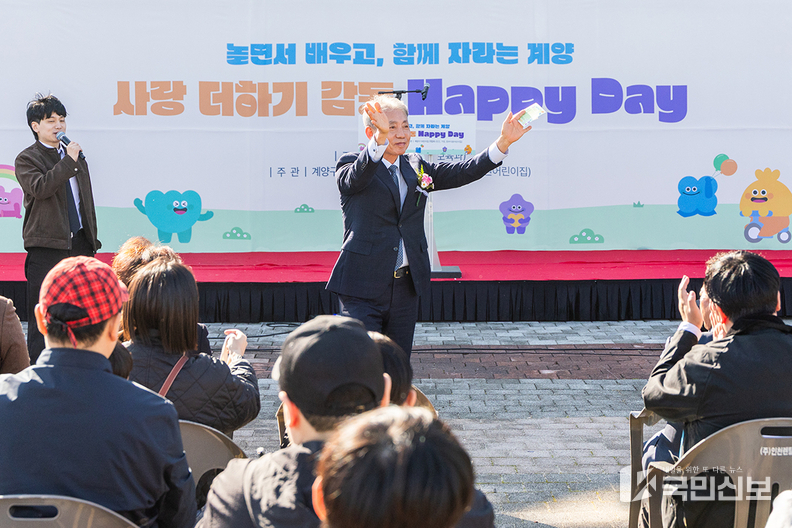국민신보 김철 기자 | 인천광역시 계양구는 지난 1일 계양아시아드양궁장에서 어린이집 영유아와 가족 1,500여 명이 참여한 가운데 ‘사랑더하기 감동 Happy Day’ 행사를 성황리에 개최했다.