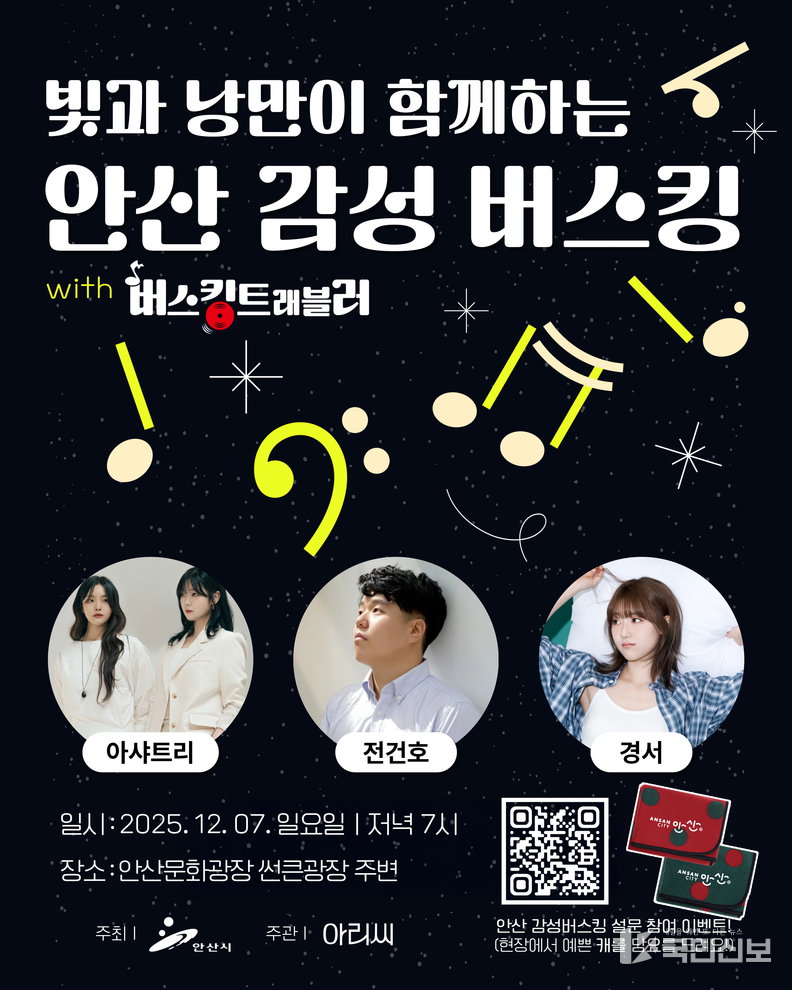특히 버스킹 공연은 ‘안산 겨울 빛의 나라’ 축제를 배경으로 진행돼 감미로운 공연과 함께 화려한 조명으로 가득찬 문화광장의 아름다운 풍경을 즐길 수 있다.