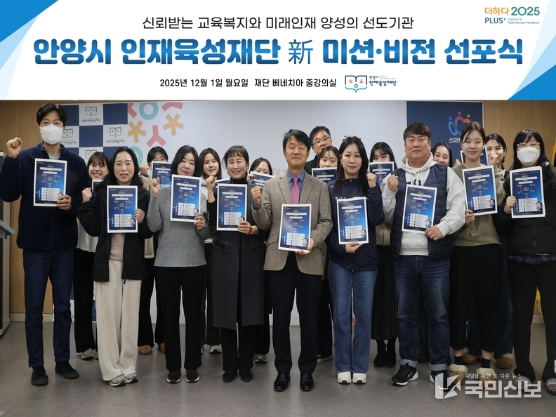 안양시 인재육성재단이 2026년을 기점으로 재단 운영 체계를 전면 재정비하며 ‘미래 인재 양성의 핵심 기관’으로 도약하겠다는 의지를 밝혔다. 재단은 최근 임직원 전체 회의를 열고 2026년을 향한 새로운 미션·비전과 핵심가치를 공식 선포했다.