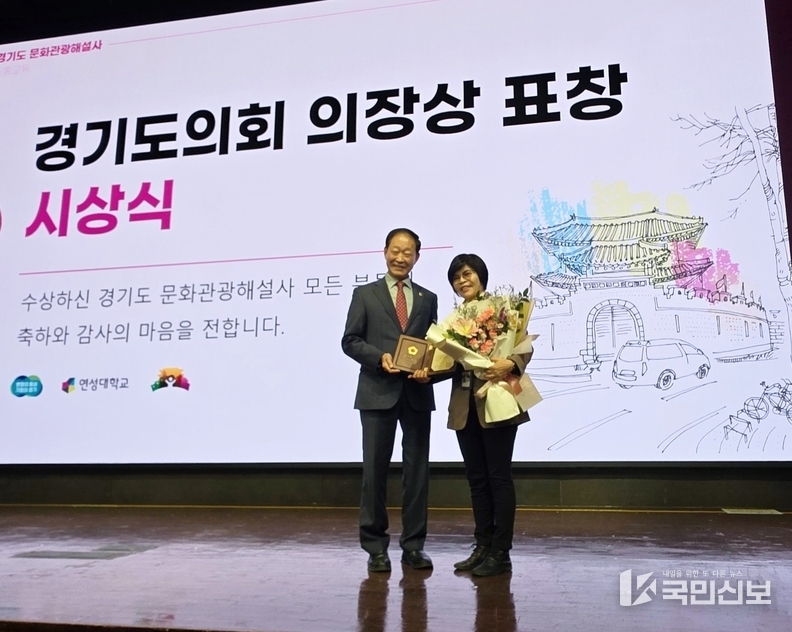국민신보 박래철 기자 | 경기도의회 문화체육관광위원회 윤재영 의원(국민의힘, 용인10)은 11월 3일 화성 라비돌리조트 신텍스 컨벤션 그랜드볼룸에서 열린 “2025년 문화관광해설사 소통교육” 행사에 참석해 축사를 전하고, 경기도의회 의장상을 수여했다. 이번 행사는 경기도와 연성대학교, 경기도문화관광해설사협회가 공동으로 주최해 도내 30개 시·군에서 약 500여 명의 해설사와 담당자들이 참여했다.