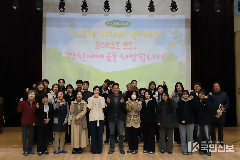 국민신보 박래철 기자 | 산림청 한국산림복지진흥원 국립춘천숲체원은 지난 3일, 가정의학과 전문의이자 '아픈 당신에게 숲을 처방합니다'의 저자인 서정아 의사를 초청해 ‘당신에게 숲을 처방합니다’ 북토크를 개최했다고 밝혔다.