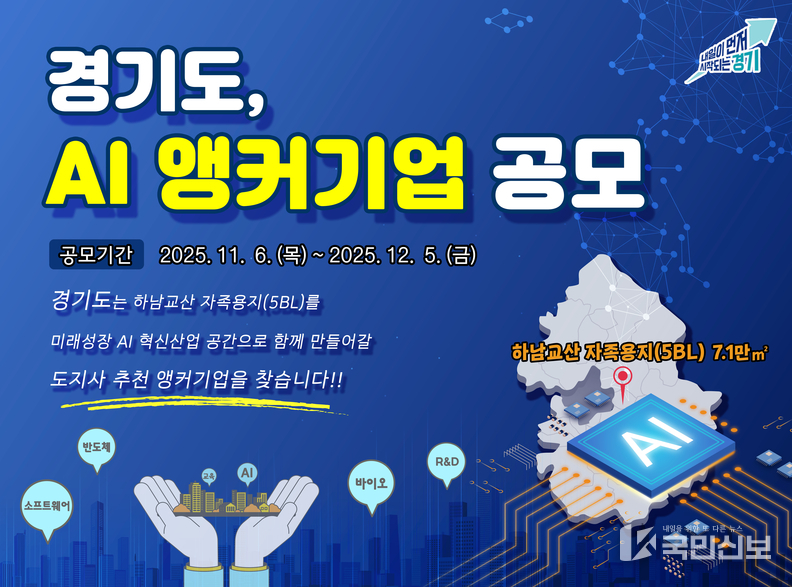 경기도가 하남교산 신도시를 인공지능(AI) 산업의 핵심 거점으로 조성하기 위해 인공지능 선도(앵커)기업을 유치하기로 하고 6일부터 12월 5일까지 공모를 진행한다.