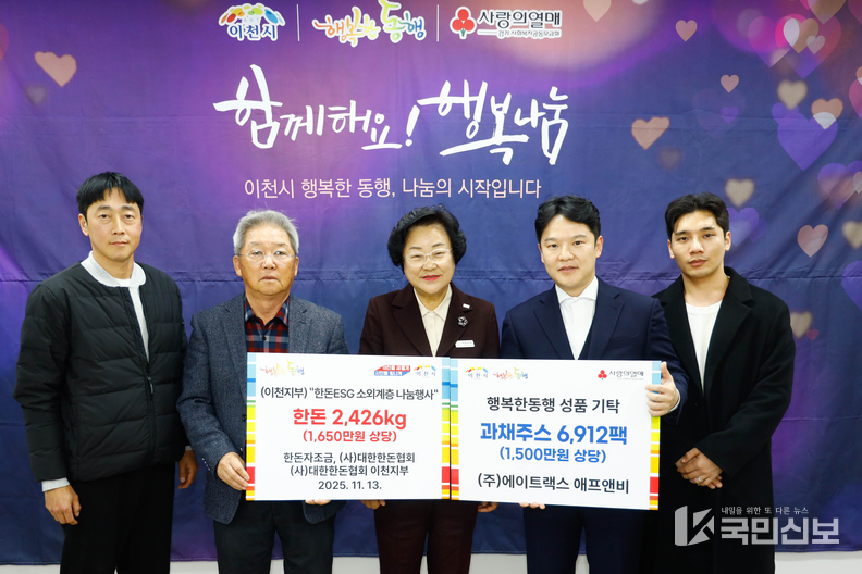 이천시는 지난 13일 시청에서 지역 사회를 위한 따뜻한 나눔이 이어졌다고 밝혔다. 이날 기탁식에는 (사)대한한돈협회 이천지부와 ㈜에이트랙스 애프앤비가 참여해 이웃사랑 실천에 동참했다.