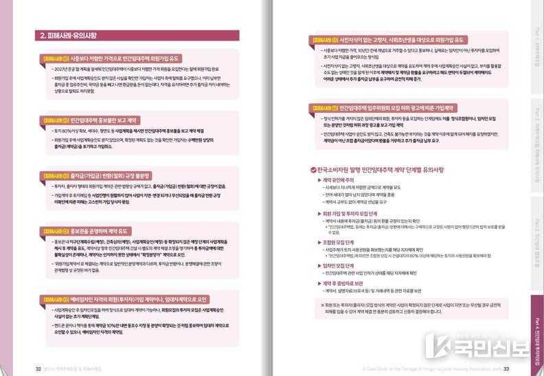 이와 함께 ‘지역주택조합 등의 피해사례집’을 제작했다. 사례집은 시청 민원여권과와 각 구청 민원지적과, 각 읍·면·동 행정복지센터에서 볼 수 있으며, 시청 홈페이지에서도 다운로드와 열람이 가능도록 공개했다.