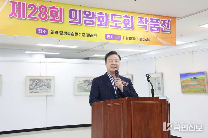 김성제 의왕시장이 11월 18일, 평생학습관 2층 갤러리에서 열린 ‘제28회 의왕화도회 작품전’ 개막식에 참석해 회원들의 작품을 관람하고 올 한 해 활동 성과를 격려했다.