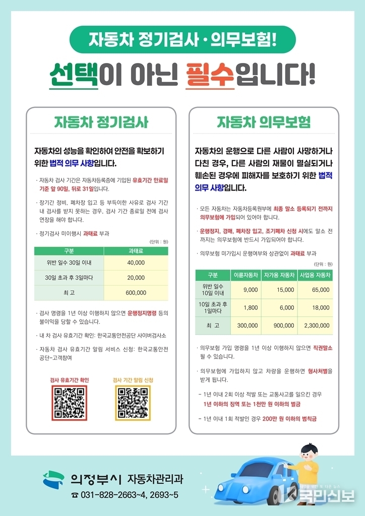 의정부시는 자동차 정기(종합)검사와 의무보험 가입 등에 대한 지속적인 홍보를 전개하고 있다.
