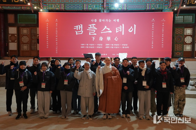 대한불교조계종 19교구 지리산대화엄사 교구장 우석스님은 화엄원 특설 마당에서 문화공간 확장 프로그램 캠플스테이 “하신화심 (下身華心)” 프로그램을 해군사관학교 사관생도 19명을 초대하여 영하의 날씨 임에도 불구하고 야외 텐트에서 12월 5일-6일(1박 2일) 참가 하였다.