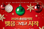 의왕시는 12월 12일 오후 7시 30분, 계원예술대학교 우경아트홀에서 ‘2025 송년음악회–맺음 그리고 시작’을 개최한다. 이번 공연은 의왕시필하모닉오케스트라의 제36회 정기연주회로, 시민에게 연말 문화 향유 기회를 제공하고 새해의 희망적 메시지를 전하고자 마련됐다. 이번 무대에서는 의왕시필하모닉오케스트라(지휘 장명근)를 중심으로 소프라노 우지연, 베이스 김민기, 의왕시립소년소녀합창단이 함께해 더욱 풍성한 음악의 깊이를 선사할 예정이다. 이번 공연은 전석 무료로 진행되며, 당일 오후 7시부터 선착순 입장이 가능하다. 김성제 의왕시장은 “이번 송년음악회가 시민 여러분께 한 해를 따뜻하게 마무리하고 새로운 희망을 준비하는 의미 있는 시간이 되기를 바란다”며 “앞으로도 수준 높은 문화예술 프로그램을 지속적으로 제공해 시민의 문화향유 기회를 확대해 나가겠다”고 말했다. [ 국민신보 = 김영 기자 ]
