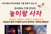 화성특례시가 오는 26일 화성시역사박물관에서 올해 마지막 문화가 있는 날 프로그램 참여하는 전통놀이 콘서트 '놀이왕 사자’를 운영한다. ‘문화가 있는 날’이란 매달 마지막 수요일 및 그 주간에 국민이 일상에서 문화를 향유할 수 있도록, 영화관, 박물관, 도서관 등 전국 문화시설에서 무료 관람 등 다양한 문화 혜택을 제공하는 날을 말한다. 이날 15시 30분부터는 사전 프로그램으로 전시실 속 전통 놀이를 알아보는 ‘활동지 풀이 체험’이 진행되며, 16시부터는 본 공연으로 사물놀이·사자탈놀이 등 어린이가 직접 참여하는 전통놀이 콘서트 ‘놀이왕 사자’가 운영된다. 콘서트는 오는 15일부터 24일까지 화성시 통합예약시스템에서 예약하면 참여할 수 있다. 참여 대상은 5세 이상 어린이를 동반한 가족 70명이다. 관람료는 무료다. 정상훈 문화유산과장은 “올해 다양한 공연과 체험프로그램을 운영해 화성시 어린이들에게 질 높은 문화체험 기회를 제공했다”며 “앞으로도 수준 높은 문화 행사를 마련하는 등 지역문화의 허브 기관으로서 최선을 다하겠다”라고 말했다. 한편, 화성시 역사박물관은 지난 2월부터 11월까지 ‘문화가 있는 날’에 공연 및 체험 프로그램 등을 운영해, 시민들에게