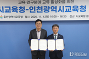 인천광역시교육청은 울산광역시교육청과 지난 4일 울산시교육청에서 ‘읽걷쓰 문화 확산을 위한 상호 협약’을 체결하고, 양 기관의 교류와 협력을 강화하기로 했다. 이번 협약은 인천시교육청의 읽걷쓰 교육 철학에 공감대를 형성하고, 교육·연구 분야 교류 및 지역 특성에 맞는 교육 모델 공동 개발을 추진하기 위해 마련됐다. 양 교육청은 ▲교육·연구 교류 활성화 ▲읽걷쓰·책크인·민주시민교육 등 프로그램 연계 ▲지역 문제 해결 및 사회공헌 프로그램 공동 운영 등을 추진하기로 합의했다. 또한 한국교원대학교에서 개발 중인 읽걷쓰 전국 단위 교원 연수비용 할인을 울산광역시교육청에도 적용하기로 했다. 협약식 후 도성훈 교육감은 ‘읽걷쓰와 함께하는 인천 평화교육’주제 강연에서 인간과 자연, 인공지능이 공존하는 시대에 나다움과 인간다움을 갖춘 애기애타 정신의 중요성과 인천교육청의 평화·민주시민교육 사례를 공유했다. 울산교육청 관계자는 “인천교육청의 읽걷쓰 철학에 깊이 공감한다”며 “양 기관의 협력으로 학생들의 삶과 학습을 연결하는 교육 혁신을 추진하겠다”고 전했다. 도성훈 교육감은 “이번 협약은 인천과 울산이 함께 교육의 본질을 회복하고, 학생 한 사람 한 사람의 배움과 성장을 중심
