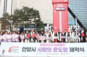 안양시는 지난 4일 범계역 광장에서 ‘희망 2026 나눔 캠페인 사랑의 온도탑’ 제막식을 열고, 모금 목표 9억원을 향한 연말 이웃돕기 캠페인의 막을 올렸다고 5일 밝혔다. 올해 캠페인은 ‘행복을 더하는 기부, 기부로 바꾸는 안양’을 슬로건으로 내년 1월 31일까지 이어진다. 범계역 광장에 설치된 온도탑은 안양시 모금 목표액의 1%(900만원)의 성금이 모금될 때마다 1도씩 올라가며, 목표액을 달성하면 사랑의 온도가 100도에 도달하게 된다. 제막식에는 최대호 안양시장, 박준모 안양시의회 의장, 김효진 경기 사랑의열매 사무처장, 구재관 지역사회보장협의체 민간위원장, 기부자 등 30여 명이 참석해 연말 나눔의 시작에 함께했다. 이날 기부자들의 성금 및 성품 기탁식도 진행됐다. 연성대학교 사회복지경영과에서 100만원, 용마로지스(주)가 300만원, 안양지역 건축사회와 별별협동조합이 각 100만원, 명륜진사갈비 안양범계점이 200만원의 성금을 기탁했다. 또, 국민건강보험공단 안양지사가 300만원 상당의 육아용품 30박스를, 크리스토퍼 안양군포의왕 총동문회가 200만원 상당의 겨울이불 50채를 기탁했다. 최대호 안양시장은 “시민과 기업이 함께 참여하는 나눔 문화가